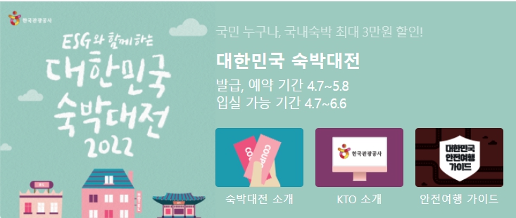- 대한민국 구석구석 누리집에서 대한민국 숙박 대전 쿠폰 발급을 받으실 수 있습니다.